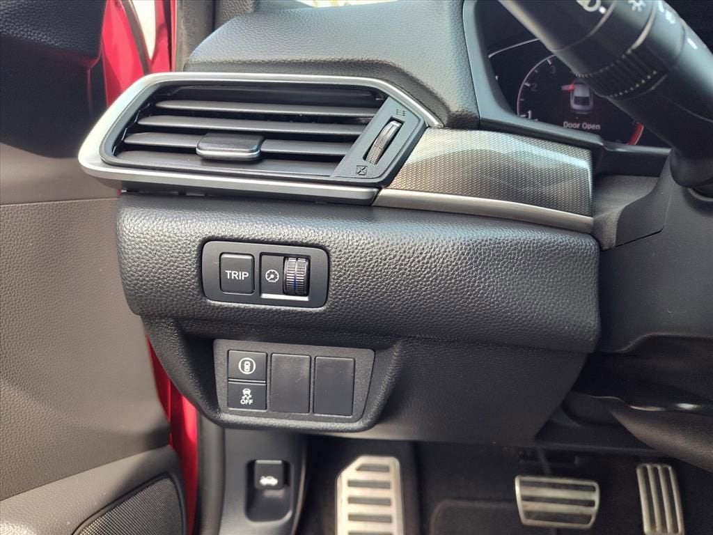 Cloth, 4-Wheel Disc Brakes, 8 Speakers, ABS brakes, Adaptive Cruise Control: Adaptive Cruise Control (ACC) with Low-Speed Follow, Air Conditioning, Alloy wheels, AM/FM radio, Apple CarPlay/Android Auto, Auto High-beam Headlights, Automatic temperature control, Brake assist, Bumpers: body-color, Cloth Seat Trim, Delay-off headlights, Driver door bin, Driver vanity mirror, Dual front impact airbags, Dual front side impact airbags, Electronic Stability Control, Emergency communication system: HondaLink, Exterior Parking Camera Rear, Forward collision: Collision Mitigation Braking System (CMBS) + FCW mitigation, Four wheel independent suspension, Front anti-roll bar, Front Bucket Seats, Front Center Armrest, Front dual zone A/C, Front fog lights, Front reading lights, Fully automatic headlights, Illuminated entry, Knee airbag, Lane Departure Warning System, Leather Shift Knob, Leather steering wheel, Low tire pressure warning, Occupant sensing airbag, Outside temperature display, Overhead airbag, Overhead console, Panic alarm, Passenger door bin, Passenger vanity mirror, Power door mirrors, Power driver seat, Power steering, Power windows, Radio data system, Radio: 180-Watt AM/FM Audio System, Rear anti-roll bar, Rear seat center armrest, Rear window defroster, Remote keyless entry, Security system, Speed control, Speed-sensing steering, Speed-Sensitive Wipers, Split folding rear seat, Spoiler, Steering wheel mounted audio controls, Tachometer, Telescoping steering wheel, Tilt steering wheel, Traction control, Trip computer, Variably intermittent wipers, and Wheels: 19 Machine-Finished Alloy w/Black Inserts.
